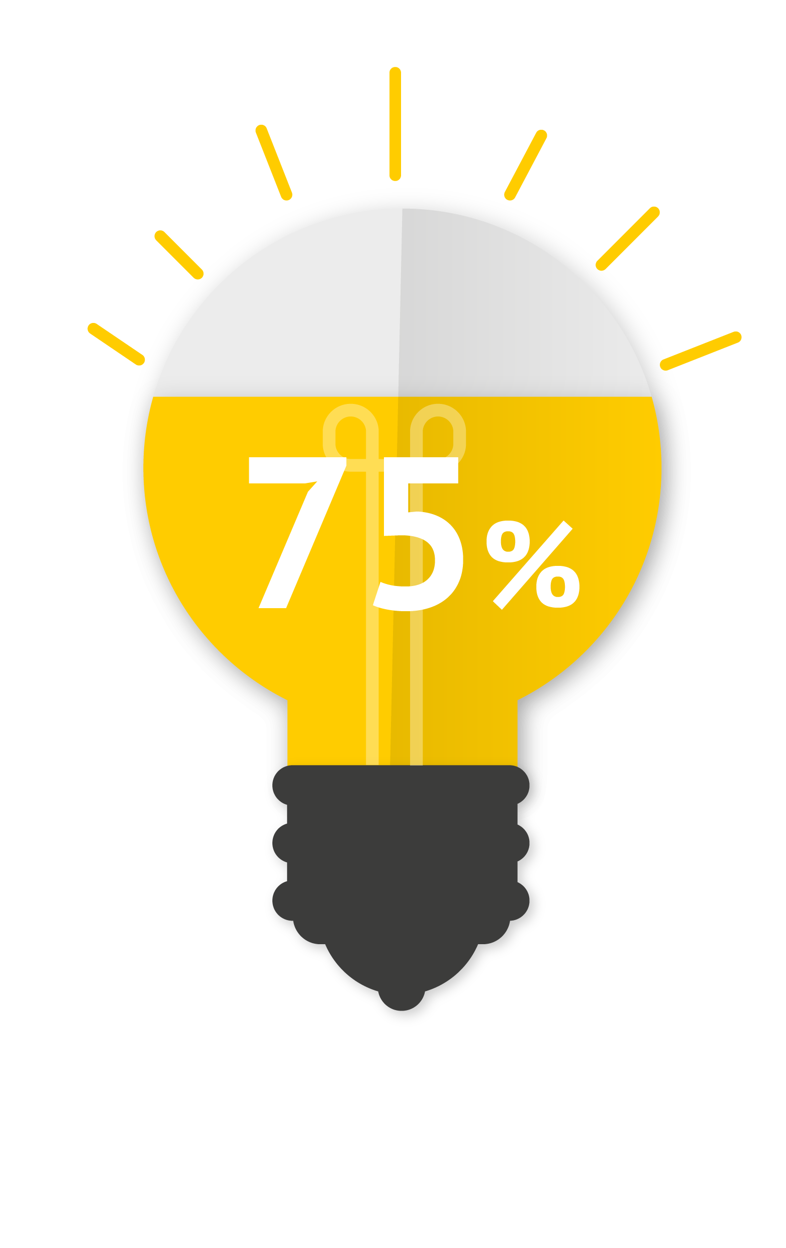 LED bulbs use at least 75% less energy than regular bulbs and last much longer. Replacing a 50W halogen with an LED could cut your energy costs by £75 over the lifetime of the bulb.