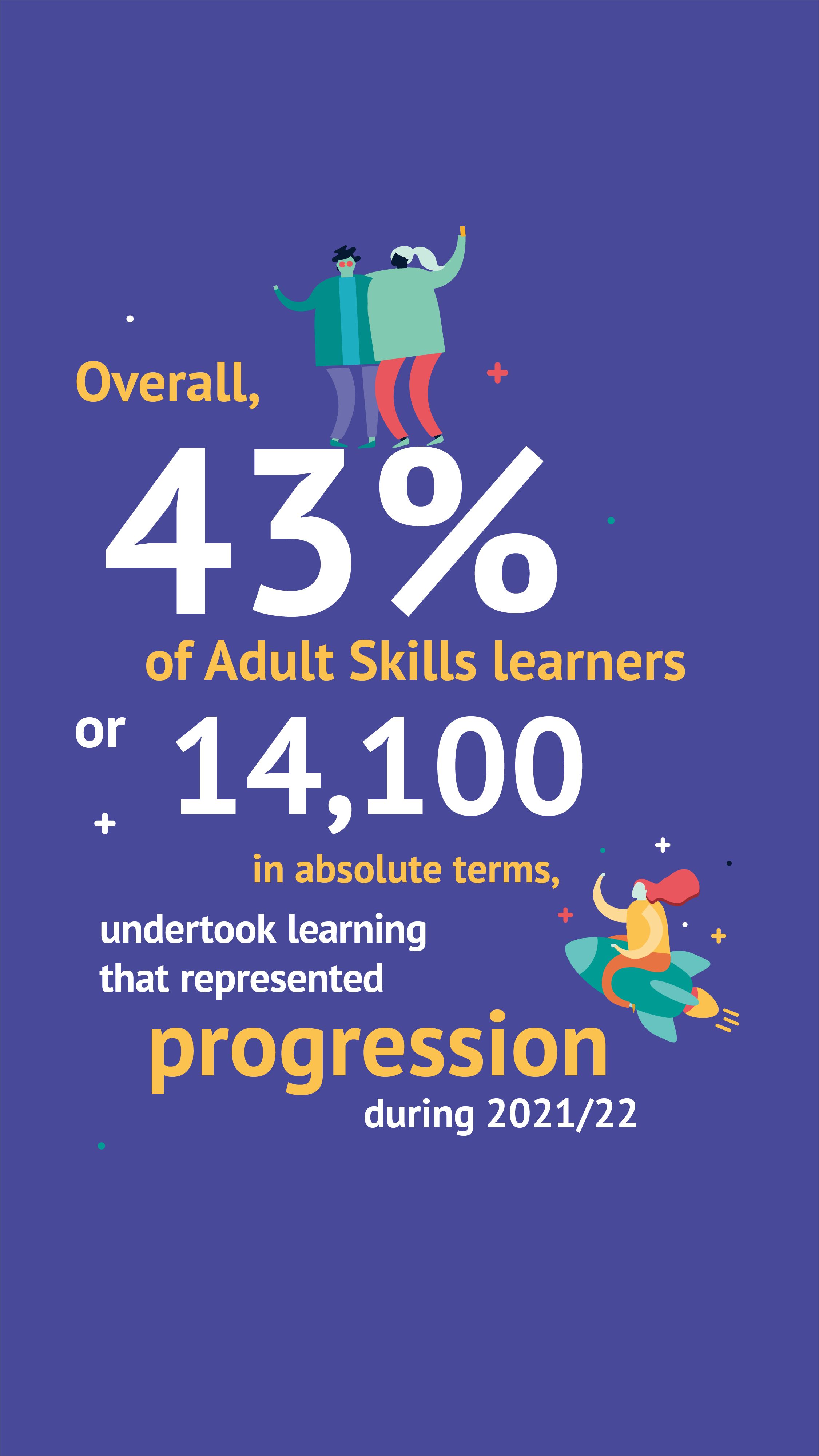 Around 8,700 learners, or 27% of the total, undertook their first qualification through Adult Skills in 2021/22