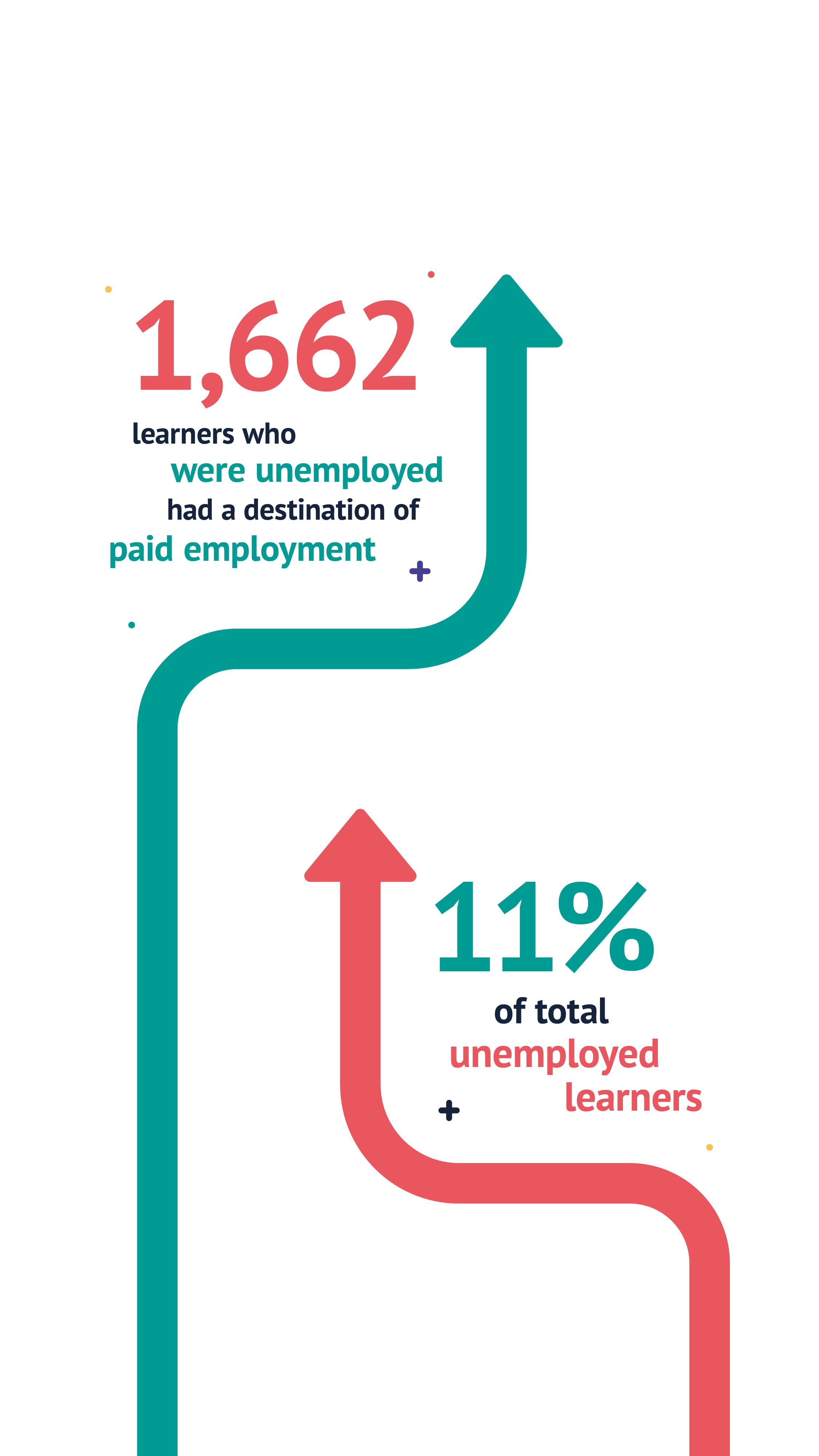 1,602 unemployed learners were recorded as progressing directly to employment after their course