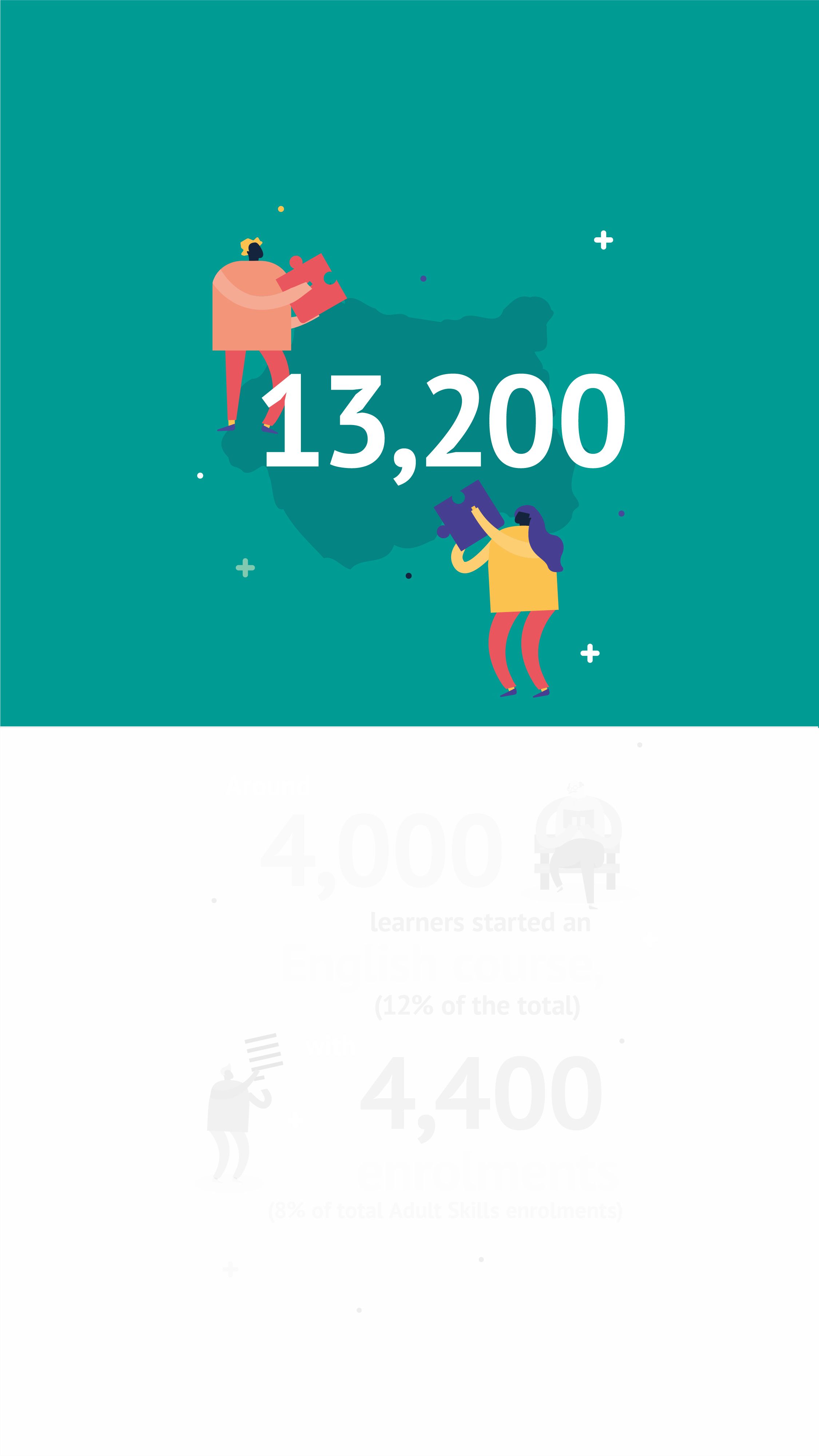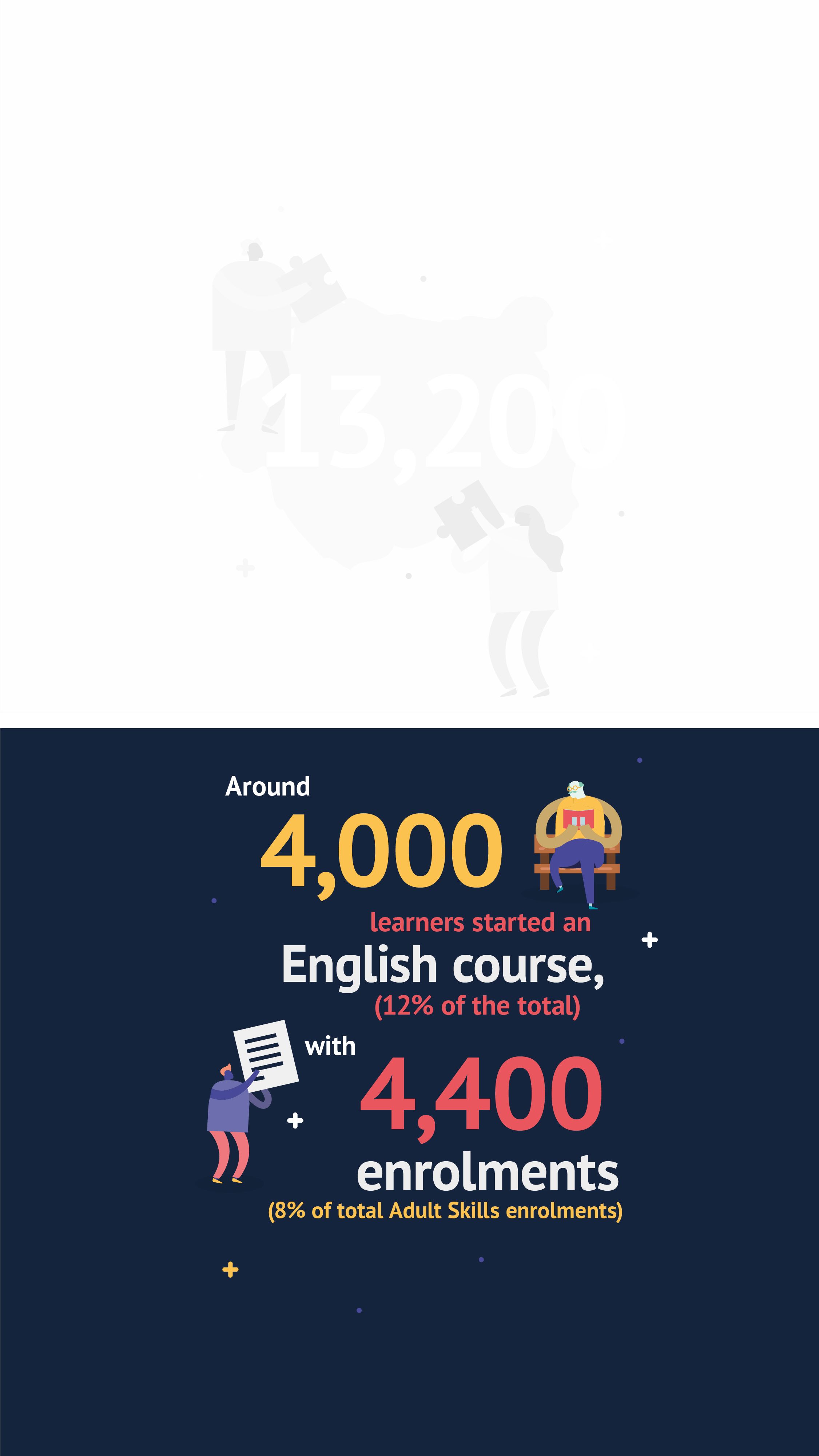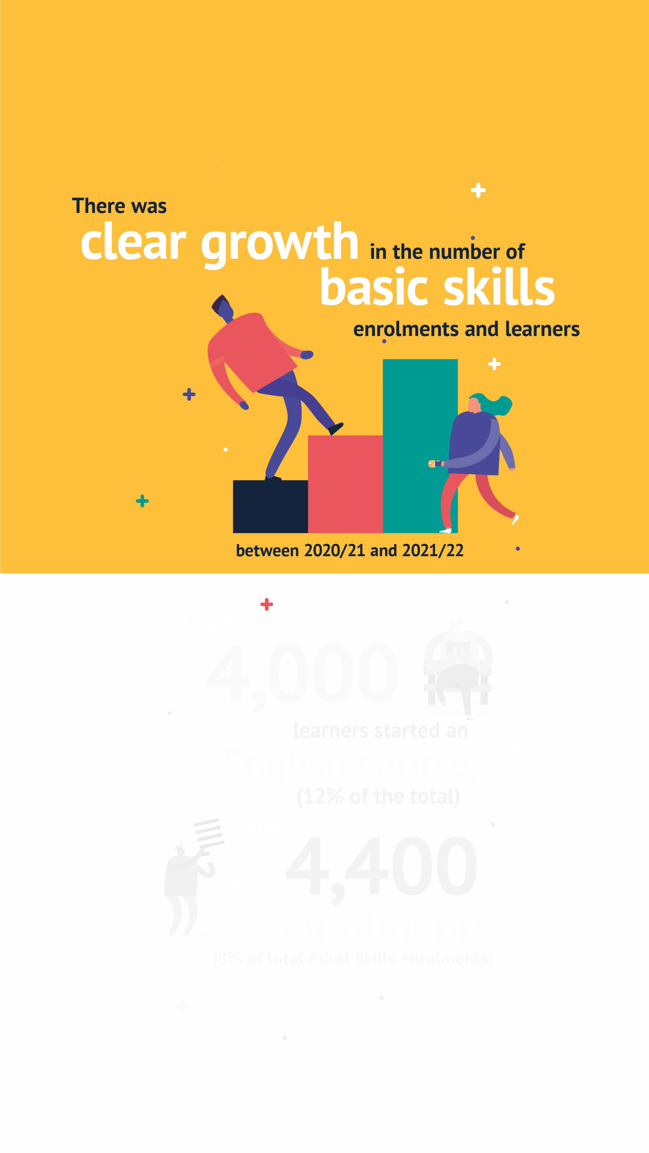 Enrolments on basic skills courses increased by 33% year on year with a 57% increase for ESOL (English for Speakers of Other Languages) enrolments