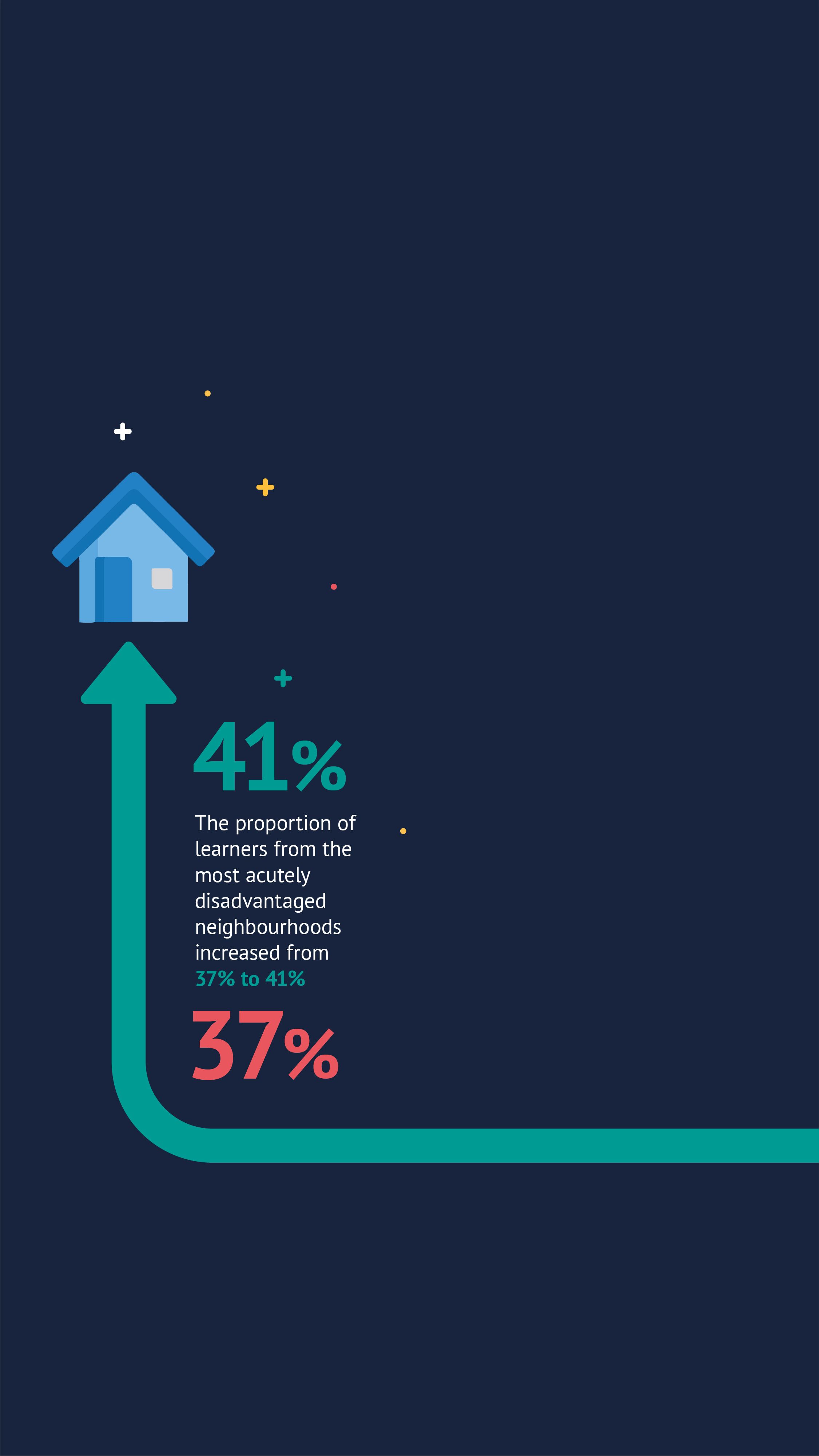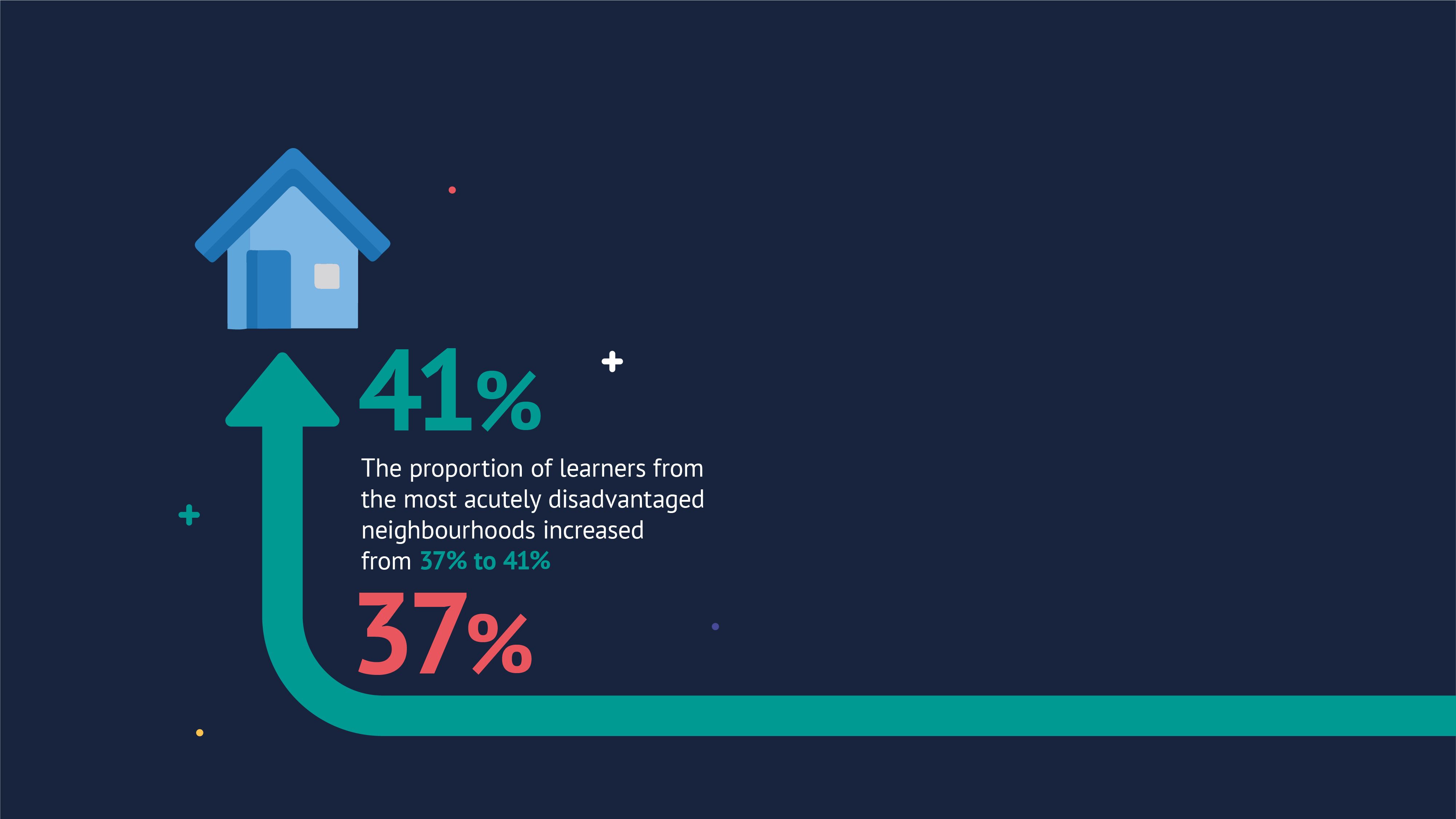 4% more residents were supported from the most acutely disadvantaged neighbourhoods increased - this means in the top 10% most deprived neighbourhoods in the UK.