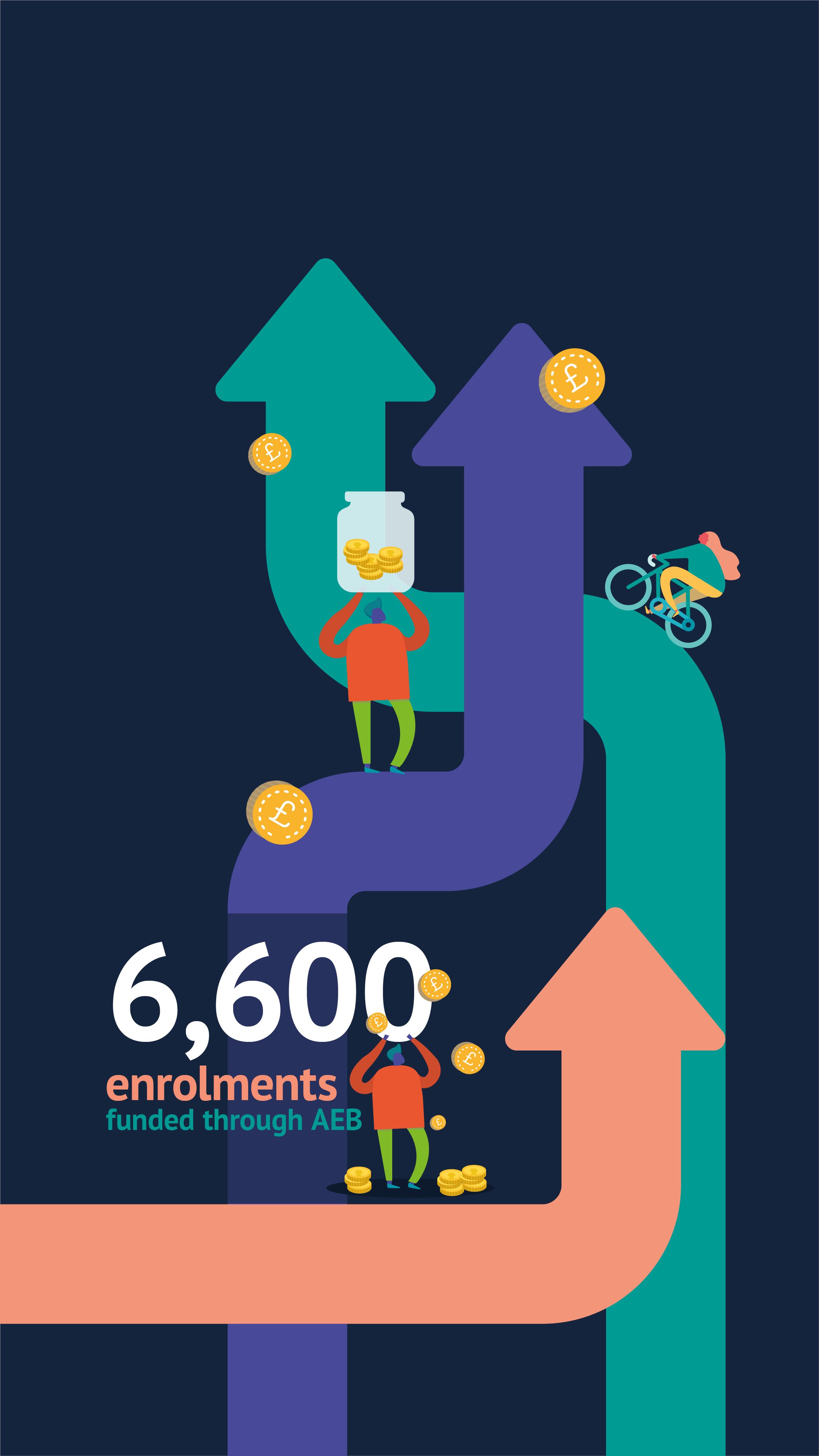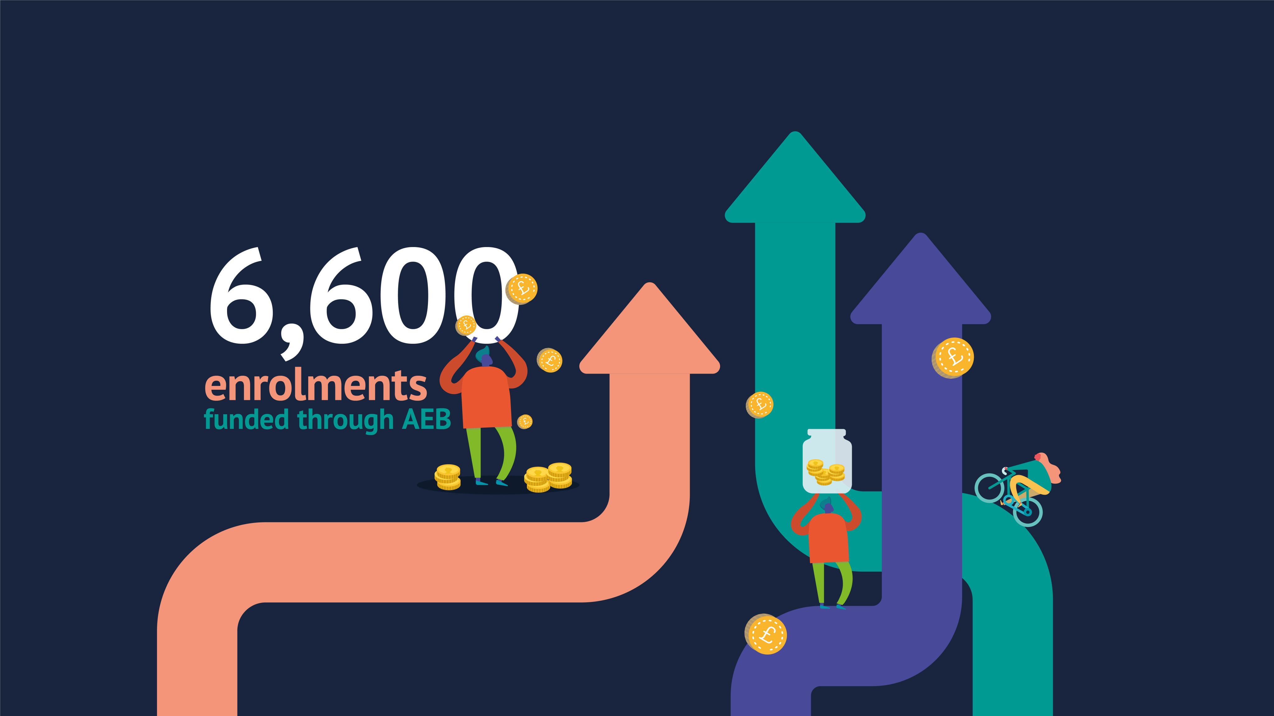 6,600 enrolments funded through AEB (12% of the total) were for people on a low wage (2,000 more than in previous years)