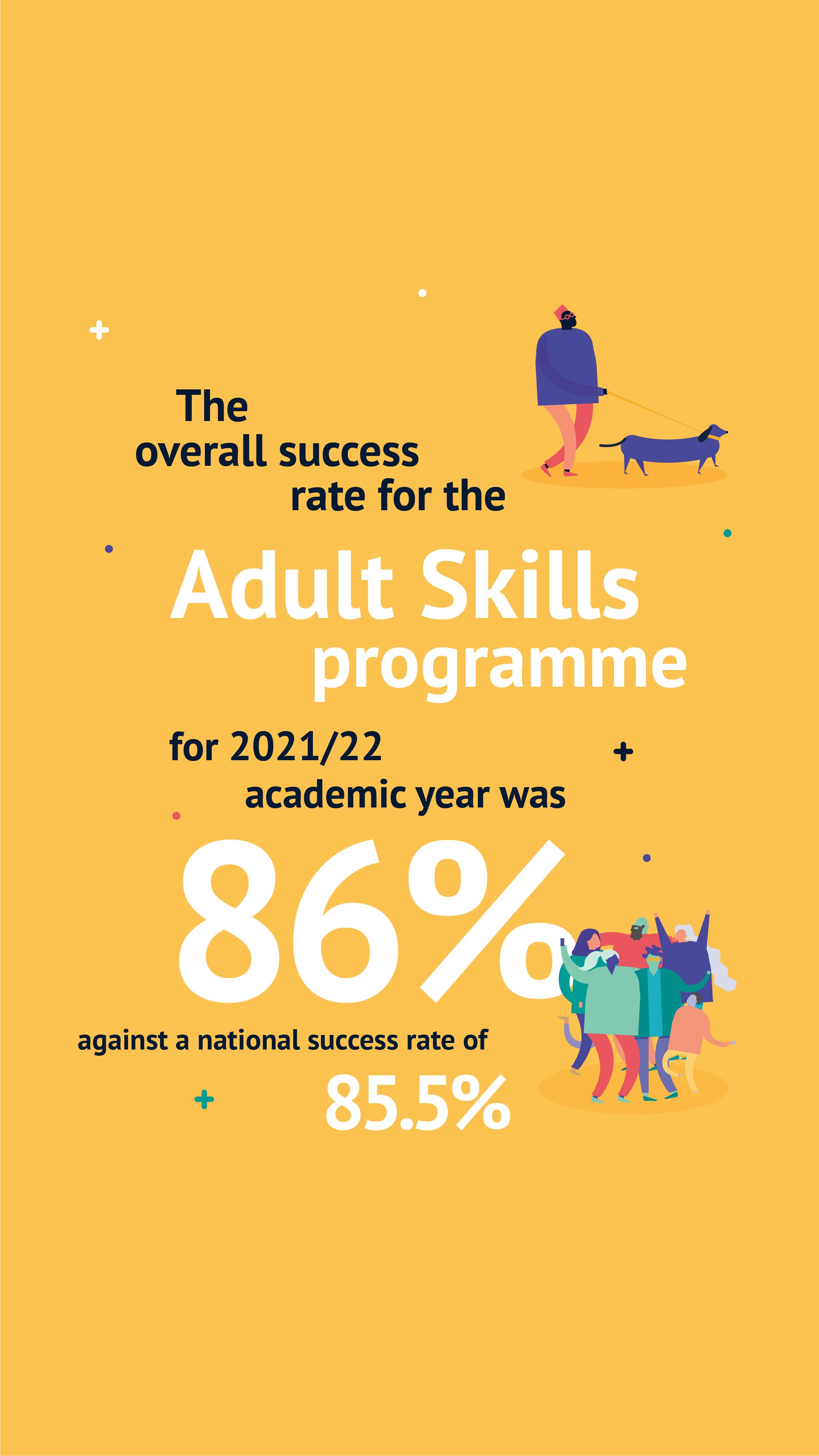 A success rate of 86% was achieved for formal Adult Skills courses.